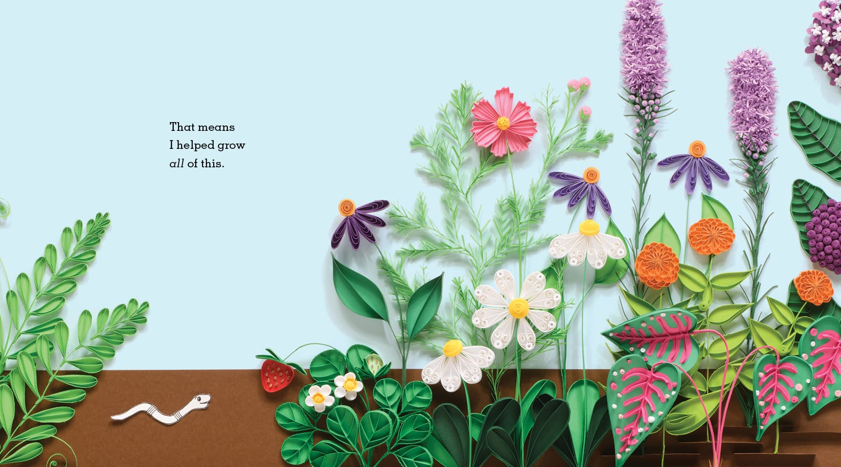 Marie illustrated Just a Worm using a technique called quilling. She cut colorful paper into narrow strips. She coiled, curled, and shaped the paper and then glued it on edge to make the illustrations. Kirkus Reviews called the illustrations “stunning.” To view a quilling tutorial, visit www.marieboyd.com/tutorials.