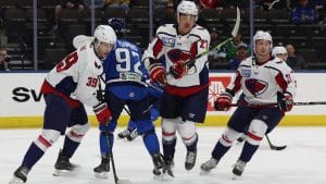 Jacksonville tied the game at the halfway point in the contest on Derek Lodermeier’s 16th marker of the year. Lodermeier placed a shot from the left circle over the glove of Wall for the 2-2 contest.
