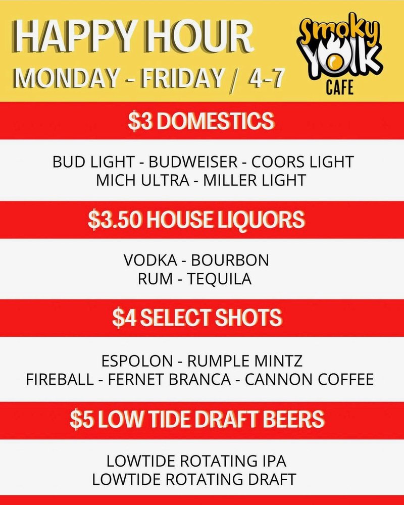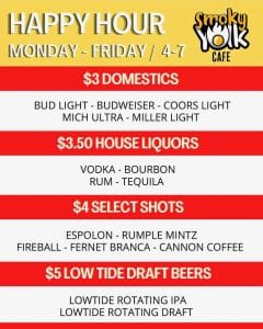 - $5 Low Tide Draft Beers – rotating IPA, rotating draft