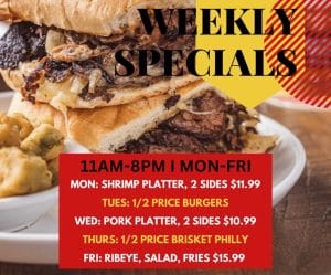 - “Steak Dinner” (Ribeye, Salad, and Fries) – $15.99