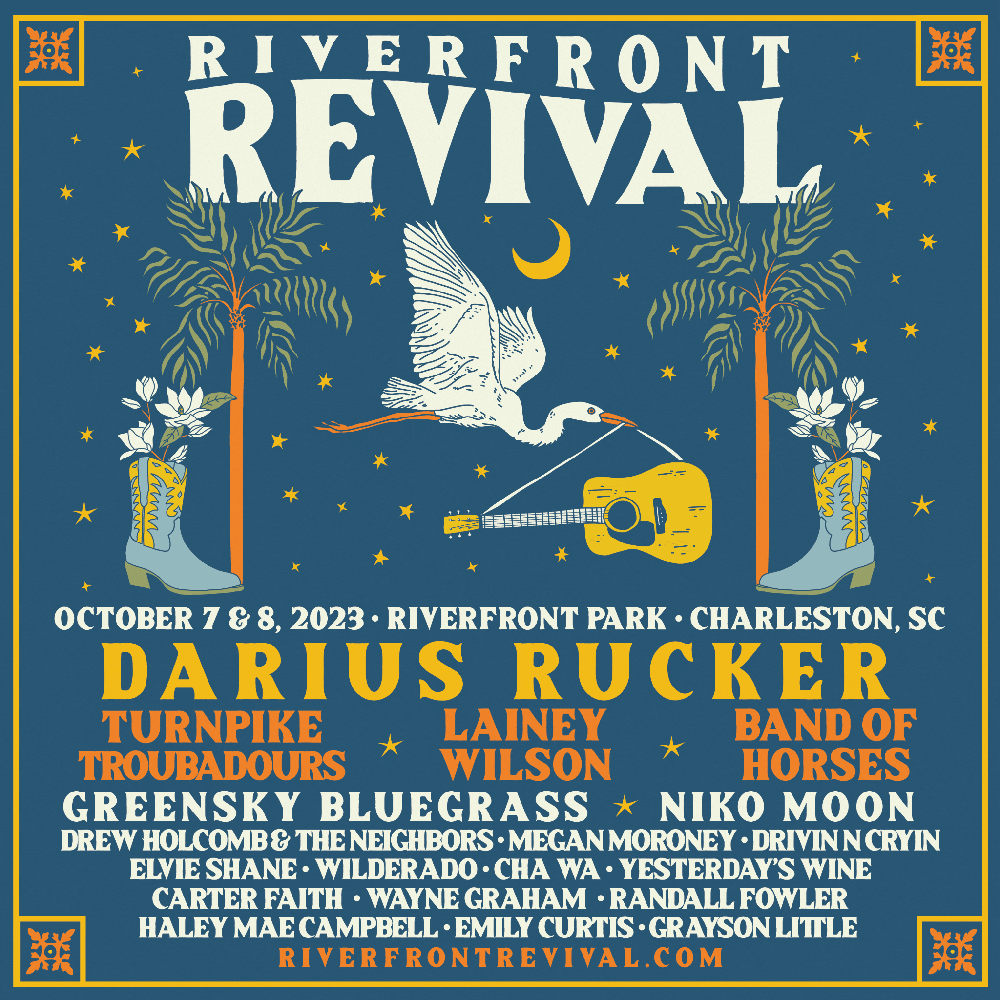 Music will play across two stages from 1 pm to 11 pm on Saturday and 1 pm to 10 pm on Sunday. Gates will open at 12 pm each day. Riverfront Revival will also feature curated offerings of the Lowcountry food, libations, art, and culture.