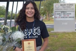 CCSD Superintendent Don Kennedy presented the finalists with balloons, flowers, and a plaque. At each stop along the route, CCSD shared live announcements and updates on its social media platforms (@CCSDConnects).
