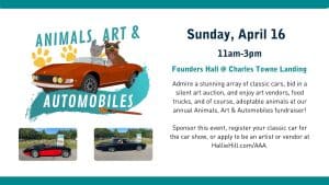 For more information on the Animals, Art & Automobiles fundraiser or to register now for the car show, apply as an art vendor, donate to the silent auction, or to sponsor the event, visit HallieHill.com.