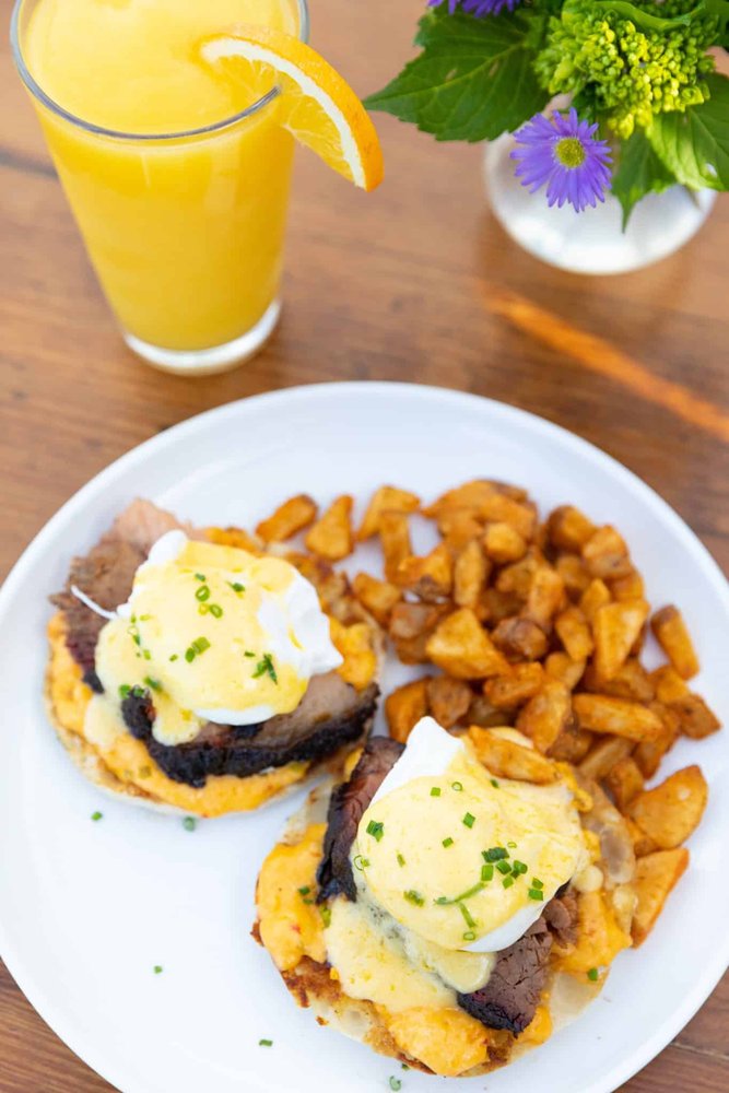 • Prime Benny House – smoked prime brisket, a poached egg, pimento cheese, and hollandaise sauce on an english muffin