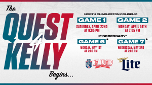 The Stingrays will open the first round at the North Charleston Coliseum with game one on Saturday, April 22nd, at 6:05 pm and game two on Monday, April 24th at 7:05 pm. If necessary, the Stingrays will host game six on Monday, May 1st, and game seven on Wednesday, May 3rd. The Stingrays’ opponent has yet to be determined.