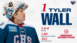 This is Wall’s second time in the last month being named Warrior Hockey ECHL Goaltender of the Week, first earning the honor for the week of March 13-19.