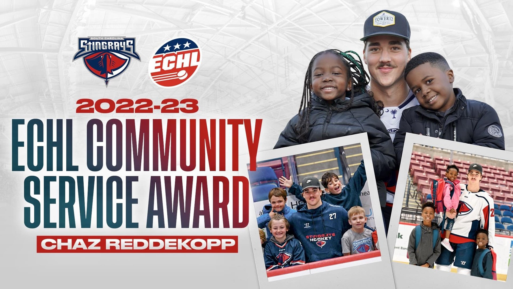 The ECHL announced today that defenseman Chaz Reddekopp has been selected as the recipient of the 2022-23 ECHL Community Service Award. Reddekopp becomes the first Stingray to receive this award since it was introduced during the 2010-11 ECHL season.