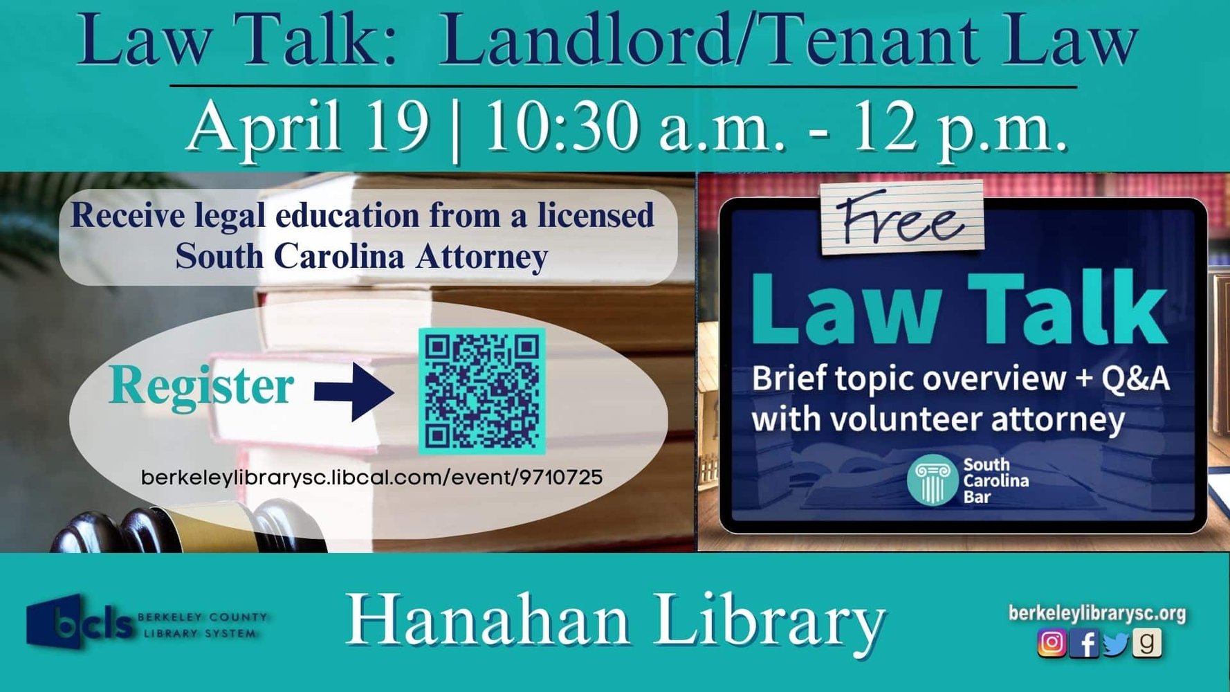 Register at https://berkeleylibrarysc.libcal.com/event/9710725 or call 843-553-0047 due to limited seating. The event is hosted by the South Carolina Bar.