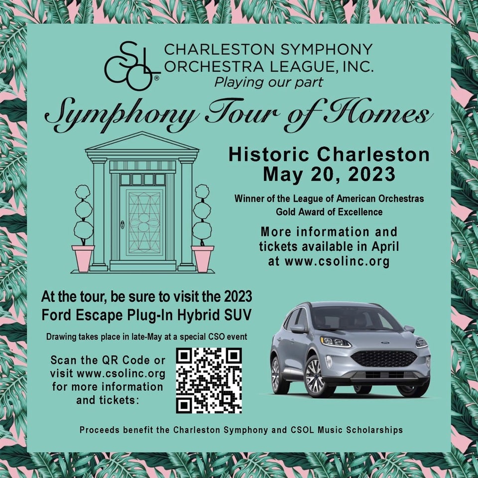 Over the past 25 years, the CSOL Symphony Tour of Homes, held in Kiawah and Charleston, have become annual destinations for visitors to the Lowcountry. The Symphony Tour of Homes would not be complete without music. As with previous tours, this tour will feature Charleston Symphony musicians and student musicians, many of whom are previous CSOL scholarship winners. The tour will have docents available at the sites s to guide and inform guests. The homes will be open, rain or shine, from 10 a.m. to 4 p.m.