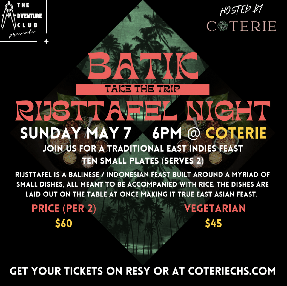 Guests are asked to purchase tickets prior to this event through Resy or OpenTable.