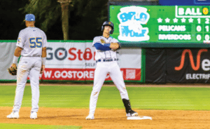 Kamren James was hit by a pitch and was joined on base when Estanli Castillo reached with an infield hit. Christopher Barete followed with a chopper back to pitcher Angel Gonzalez, who threw wildly to third base with the ball sailing out of play and forcing in a run. Odalys Peguero followed with a sacrifice fly as the margin widened to 4-1. Finally, Chandler Simpson’s bouncer to second was misplayed by Pedro Ramirez as the final run of the inning scored on the play. All three runs were unearned.