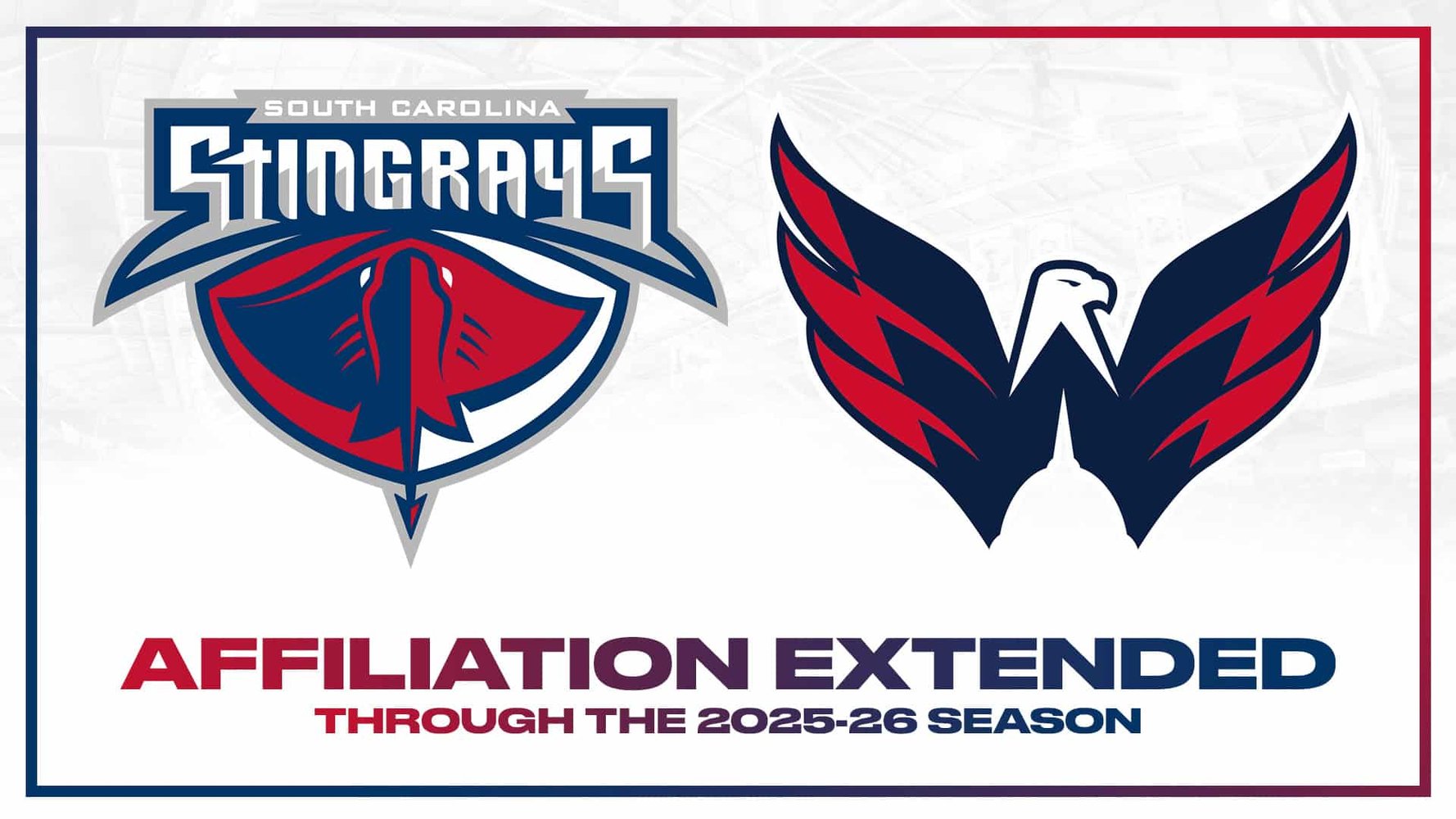 The South Carolina Stingrays have extended their affiliation with the NHL’s Washington Capitals through the 2025-26 season, Capitals senior vice president and general manager Brian MacLellan and Stingrays president Rob Concannon announced today.