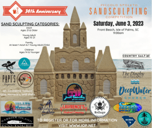 The 34th Annual Piccolo Spoleto Sand Sculpting Competition will take place on Saturday, June 3rd at 9 am on Front Beach of Isle of Palms. The  event is free and open to all those that would like to show off their sand sculpting abilities.