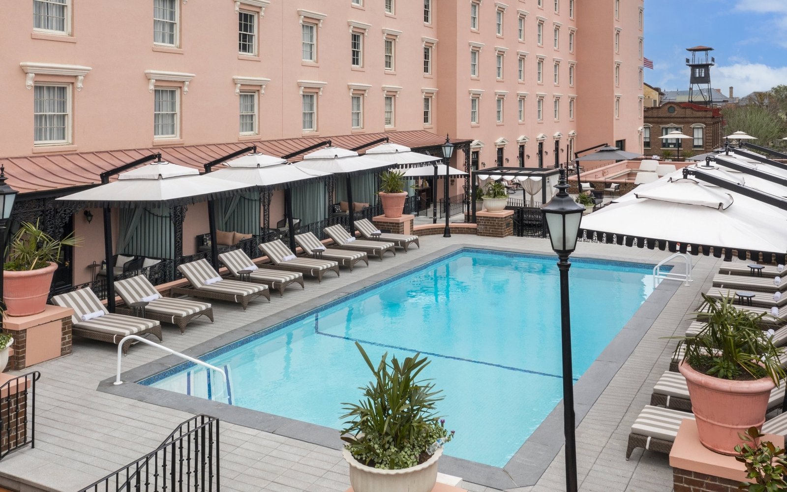 Local Charleston residents can also enjoy the new rooftop pool at The Mills House by reserving one of the private poolside cabanas. With a cabana reservation, guests receive the following: