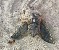 If the volunteers find tracks in the sand, they engage a core group of trained volunteer experts who will determine if there is a nest and evaluate the conditions. If the turtle has laid the nest below the high tide line, the team will relocate it to a more suitable spot where the eggs can safely incubate. The nest location secured, marked, recorded, and monitored until the hatchlings have made their way to the sea.