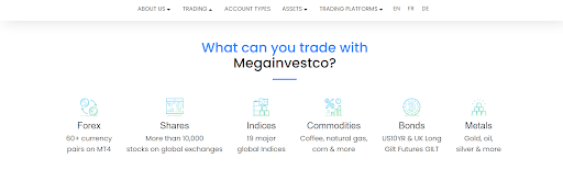 Megainvestco.com Review – Range of Markets
