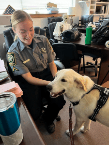 Darcy Boykin, community outreach coordinator, will be serving as Mushi’s handler. After three months of training, Mushi is now qualified and available to serve first responders. Mushi and Darcy have already earned a nationally recognized Multi Discipline Therapy K9 Team Certification and a Law Enforcement Investigative Therapy Dog Certification.