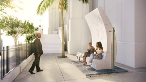 “This week’s temporary preview installation is a milestone in the design and construction of the Emanuel Nine Memorial,” said memorial architect Michael Arad. “We are thrilled to see it go up in front of the Church and hope that it will help communicate the scale, materiality and detail of the design of the fellowship benches that are at the heart of the memorial’s design.”