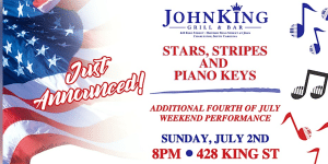 John King Grill & Dueling Piano Bar invites guests to celebrate their patriotism with a special Fourth of July piano performance on Sunday, July 2nd, from 8 pm to 2 am.