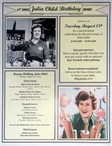 Glass Onion to Host 15th Annual Julia Child Dinner on August 15th