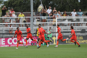 The Battery started the game looking to apply heavy pressure against the USL Championship’s top team early on. Juan Sebastian Palma broke the match open in the 11th minute, scoring with a perfectly-placed header off Fidel Barajas’ corner kick. The goal was Palma’s first career professional goal and the assist was Barajas’ sixth of the season.