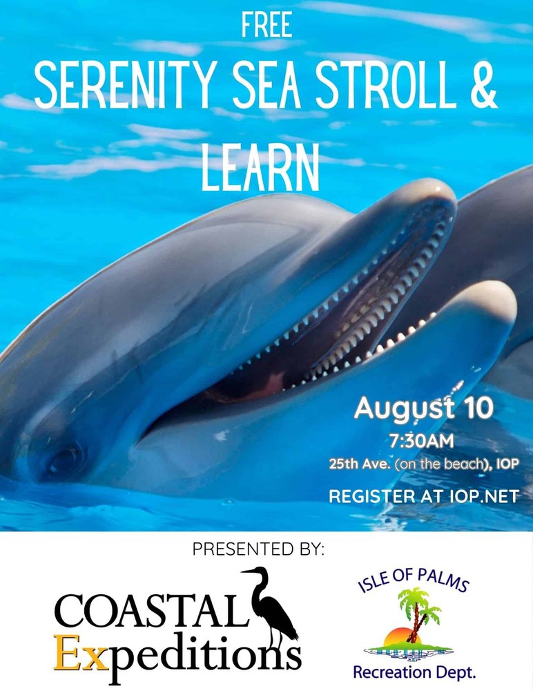 The City of Isle of Palms Recreation Department and Coastal Expeditions will host SC Dolphins – Sea Stroll & Learn on the beach (25th Avenue) on Thursday, August 10th at 7:30 am. The event is FREE for residents and visitors.