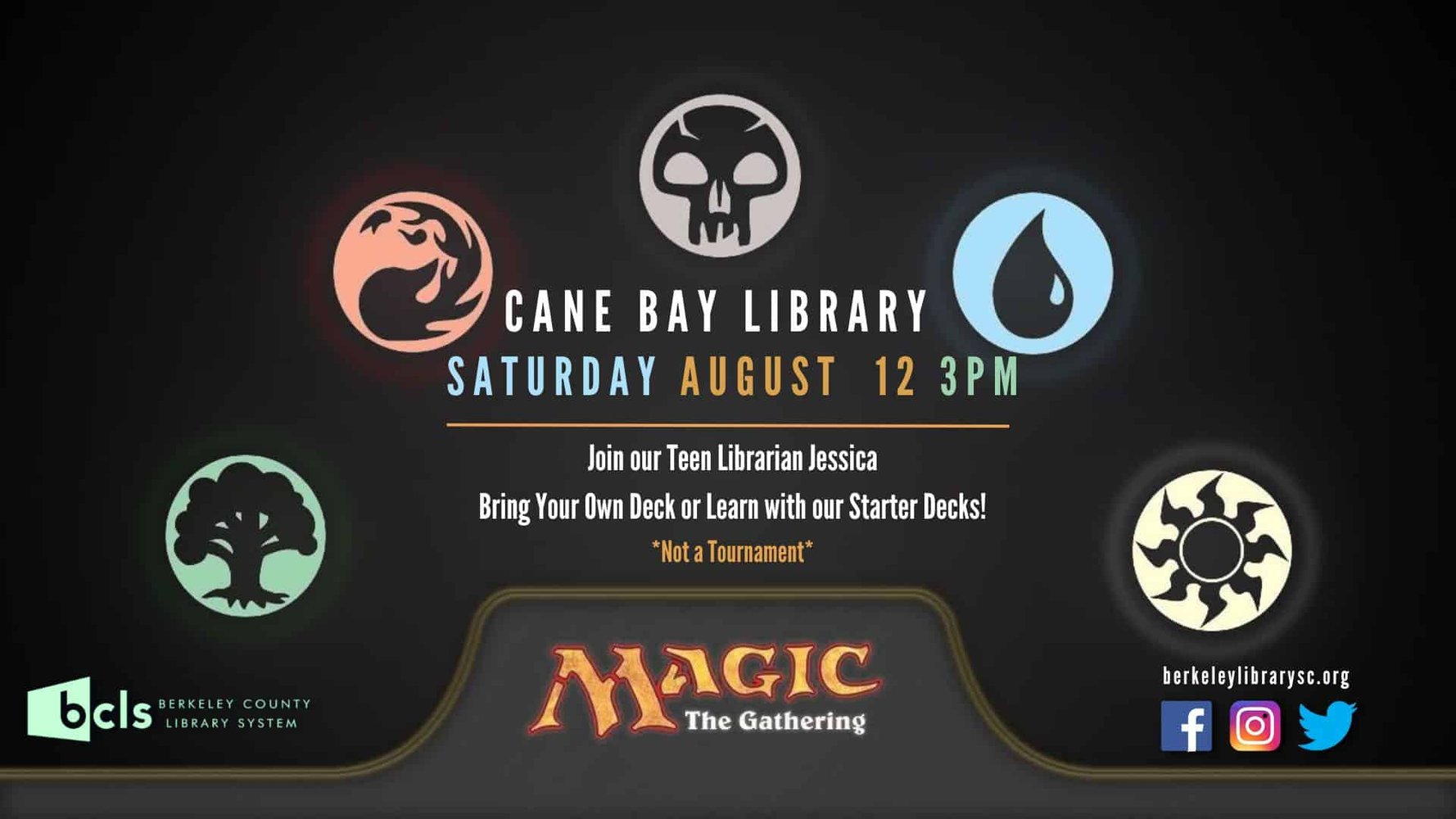 For more information on Duct Tape Wallet and Magic the Gathering Club, or other BCLS events/programs, contact Jessica Nuckolls, Young Adult Librarian, at 843-719-4223/843-719-4278 or Jessica.nuckolls@berkeleycountysc.gov.