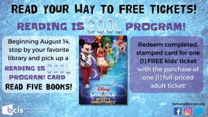 Berkeley County Library System (BCLS) is hosting Reading is Cool Program! for ages 2 -12, which could earn young readers free tickets to select Disney On Ice performances. The program will begin on Monday, August 14th, 2023.