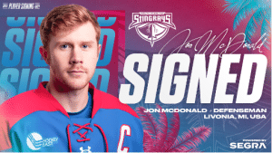 The South Carolina Stingrays, ECHL affiliate of the NHL’s Washington Capitals and AHL’s Hershey Bears, have signed defenseman Jon McDonald for the 2023-24 season. McDonald, 25, spent the last five seasons with the UMass Lowell River Hawks and suited up for ten games for the Toledo Walleye last season following the conclusion of his college career.