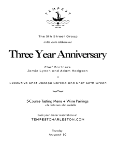 Tempest Offering Special 5-Course Chef Tasting Menu for Third Anniversary