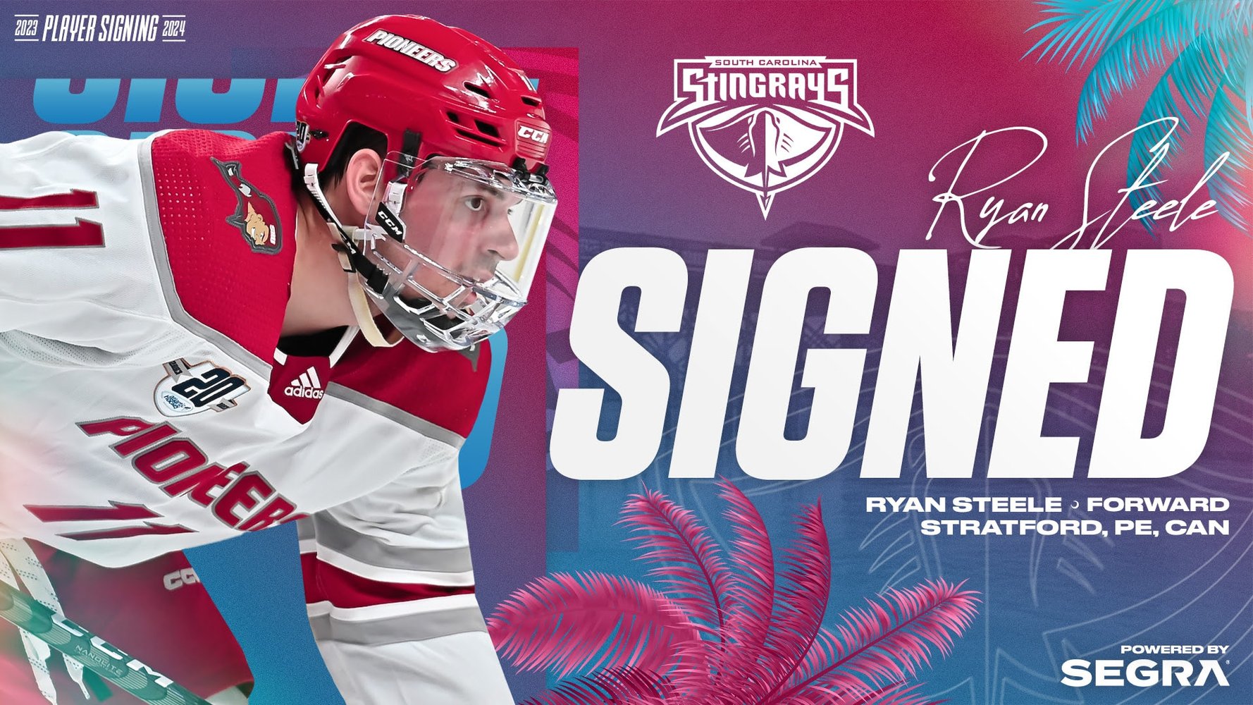“I’m super excited to join the Stingrays family,” said Steele. “Brenden was the first coach in the ECHL to reach out to me, and I immediately took a liking to him. He’s very thorough, and I like his professionalism and how he approaches the game. I think this is the best spot for me to grow as a player.”