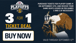 “We are hopeful to have the opportunity to host playoff baseball at The Joe for a third consecutive season. The team’s second half performance has put them in great position”, said President and General Manager Dave Echols. “The atmosphere at our home playoff games the past two seasons has been second to none and we want to fill the seats again as we make a run for a third straight championship.”