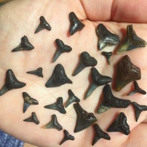 “Just south of the Charleston peninsula, Folly Beach is one of the most popular areas in the Lowcountry for tooth-seekers (and my personal favorite hunting ground). Renowned for its chill surfing vibes and family-friendly atmosphere, the area draws in plenty of tourists, so be sure to beat the crowds early (and preferably at low tide) for prime pickings. Start at the pier and work your way south. It’s an ideal location for kids to practice their spotting techniques—the teeth are plentiful here, but can be tiny.”
