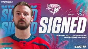 “Hallsy recently won a championship with UNB, and he provides leadership,” said Stingrays Head Coach Brenden Kotyk. “He can play his off-side which is very valuable. He pushes the play of some of our other defensemen and allows them to be a little more offensive because he takes care of the defensive zone.”