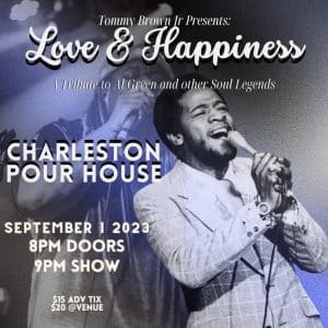 Local Charleston recording artist Tommy Brown Jr. today announced his presentation of “Love and Happiness: A Tribute to Al Green and other Soul Legends” on Friday, September 1st at the Charleston Pour House.