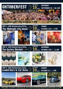 Bay Street Biergarten will be celebrating their 10th anniversary this October with several events featuring beer, live music, and more.
