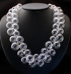 designs that make her work so distinctive. When the design is completed, the bead is slowly cooled for hours in a specialized kiln; a process called annealing, which hardens the glass and makes it very durable.