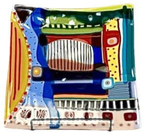 Tanya Church Craig creates fused glass artwork.  Fused glass is also referred to as kiln formed or warm glass. She has been working in glass for 20 years. Tanya’s artwork is both functional, and fanciful at times. She uses abstract artist as inspiration in the way she uses color and layering of color. Tanya states “each piece, no matter how simple looking, required a layering of glass and several trips into the kiln to melt the glass pieces together”.   Her thrill in the process shows through in her unique artwork. All her pieces are one of a kind.