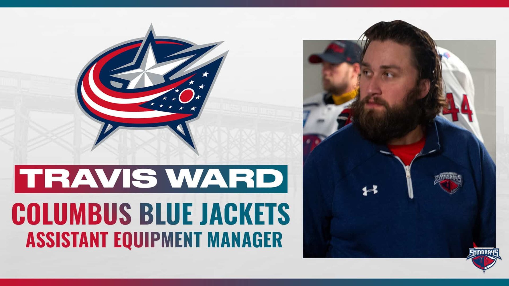 The South Carolina Stingrays, ECHL affiliate of the NHL’s Washington Capitals and AHL’s Hershey Bears, announced that Head Equipment Manager Travis Ward has accepted a new position as an Assistant Equipment Manager with the NHL’s Columbus Blue Jackets.