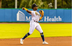 The 19-year-old GreenJackets shortstop singled with one out in the fifth inning for his third hit of the game. He quickly stole second base and advanced to third on a throwing error by catcher Bryan Broecker. Ryan Spikes threw home on Cam Magee’s grounder to second, but the throw was too late and Augusta had a 3-0 advantage.