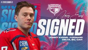 The Delta, BC native tallied three game-winning goals for the Stingrays in the 2022-23 season, including an overtime winner against the Savannah Ghost Pirates on January 13th. Evans returns to a Stingrays team coming off its seventh South Division title last season.