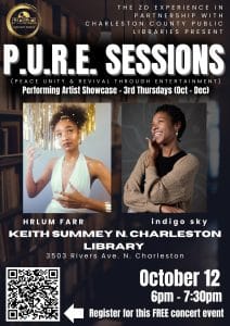 “We are thrilled to embark on the fourth season of the P.U.R.E. Concert Series,” said Zandrina Dunning at The ZD Experience. “Expanding our collaboration with Charleston County Libraries is an incredible opportunity to bring our community together through the power of music. We believe that by fostering a sense of peace, unity, and revival, we can create lasting connections and inspire positive change.”