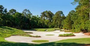 While Caledonia’s Lowcountry beauty provides a timeless appeal, True Blue is a more rugged design. The layout’s massive fairways are framed by native waste bunkers, providing visual contrast and challenge.