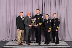 (Left to Right: Peer Team Leader Craig Rollins, Commission Chair Steve Dirksen, Fire Chief Gregory Bulanow, Retired Deputy Chief of Professional Standards Stephanie Julazadeh, & Deputy Chief of Operations Matt Rhoton)