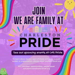 We Are Family is also hosting the Family Area of the Charleston Pride Festival at The Refinery on Saturday, September 16th, from 12 pm to 6 pm. Attendees can shop and support local youth-owned businesses, engage in family-friendly activities, fun games, Drag Story Time, and more. If you own a youth-led business or organization, you can sign up to participate in WAF’s Family Area HERE.