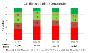 “I’m particularly concerned that nearly 40 percent of students received a failing score on the U.S. History exam. Our future depends upon citizens with knowledge deeply rooted in our shared story and America’s exceptional founding ideals. That’s why a strong focus on civics education will be an ongoing priority of my administration. Over the past two weeks, our Department has announced two civics-based competitions. The first invites students to stand in Dr. Martin Luther King Jr.’s “symbolic shadow” to deliver a speech outlining their American dream for our shared future; the second encourages students to create an exemplary community service project that aligns with Constitutional principles and solves a problem through non-profit and/or for-profit enterprise.