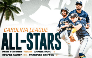Minor League Baseball announced the 2023 Carolina League All-Star Team on Tuesday afternoon. Xavier Isaac, Chandler Simpson, Cooper Kinney, and Drew Sommers were each selected as the top players at their respective positions. The RiverDogs four representatives are the most of any team in the league. The all-star team is chosen by the vote of league managers and the Commisioner’s Office.