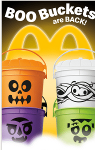Boo Buckets are back at McDonald’s just in time for Halloween. Starting on October 17th, customers can get in the spooky spirit at participating McDonald’s restaurants in the Carolinas with four new Halloween Happy Meal designs including: Monster, Skeleton, Mummy and Vampire (launching for the first time and inspired by the OG purple Boo Bucket).