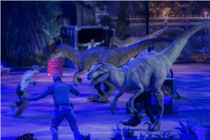 Jurassic World comes to life against a backdrop of captivating scenery where dinosaurs from the iconic franchise, including fan-favorite Blue the Velociraptor and the Tyrannosaurus rex, take the stage. The production features more than 24 film-accurate, life-sized dinosaurs, with scale, speed and ferocity, operated by animatronics and performers. Fans of the popular Netflix animated series Jurassic World: Camp Cretaceous will also recognize Bumpy, the friendly and food motivated dinosaur, as she goes from baby to adult fairly quickly.