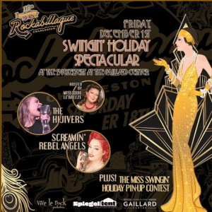 The show will be hosted by Miss Rockabillaque 2022 Pinup Winner, Miss Louie Le’Breeze, and the night will also feature the Miss Swingin’ Holiday Pinup Contest, featuring contestants showing off their mid century glamor style, personality and attitude to compete for the title of Miss Swingin’ Holiday 2023. Plus premier Classic Cars will be showcased at the entrance to the venue.